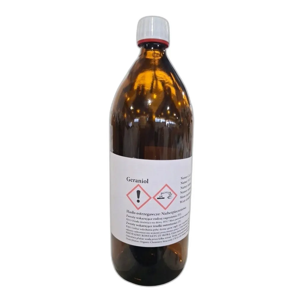 Geraniol (C10H18O) to odczynnik chemiczny przeznaczony wyłącznie do zastosowań laboratoryjnych, badawczych i profesjonalnych.